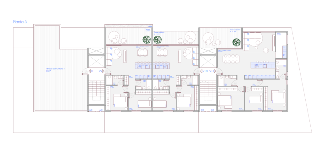 • La vivienda V9 y V10 con dos dormitorios y dos baños.